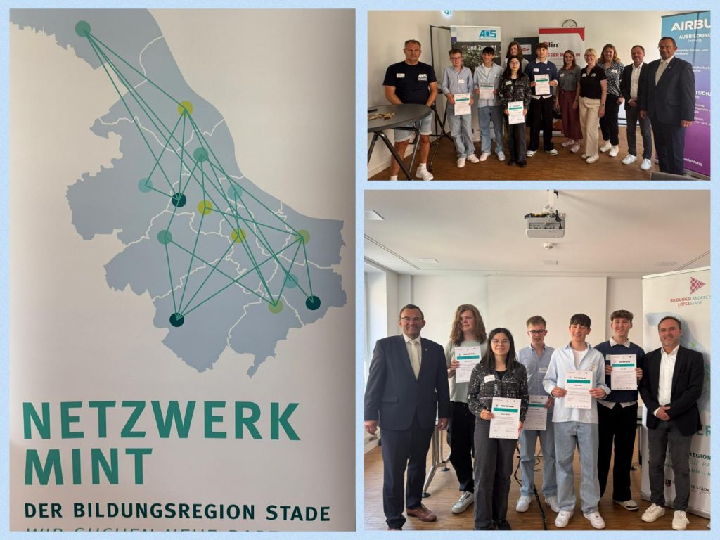 Besonders fit für MINT-Berufe sind 118 Schülerinnen von insgesamt 11 Schulen aus dem Landkreis Stade. Sie haben jetzt die Abschlussklausur des gleichnamigen Projekts geschrieben. Auch die Oberschule Apensen war vertreten: 10 engagierte Schülerinnen stellten sich der 90-minütigen Prüfung. Alle Teilnehmenden erhalten eine Teilnahmebescheinigung, die sich hervorragend in der Bewerbungsmappe macht. Wer mindestens 65 Prozent der Punkte erreicht, bekommt zusätzlich ein Zertifikat, das von Landrat Kai Seefried sowie der IHK unterzeichnet ist. Ein besonderes Highlight: Jugendliche, die über 90 Prozent der Aufgaben richtig lösen, dürfen sich über ein einwöchiges Praktikum oder einen Schnuppertag bei einem der beteiligten Unternehmen nach Wahl freuen. Dieses Ziel haben in diesem Jahr sechs Schüler*innen erreicht – darunter auch ein Schüler der Oberschule Apensen. Herzlichen Glückwunsch zu dieser großartigen Leistung!