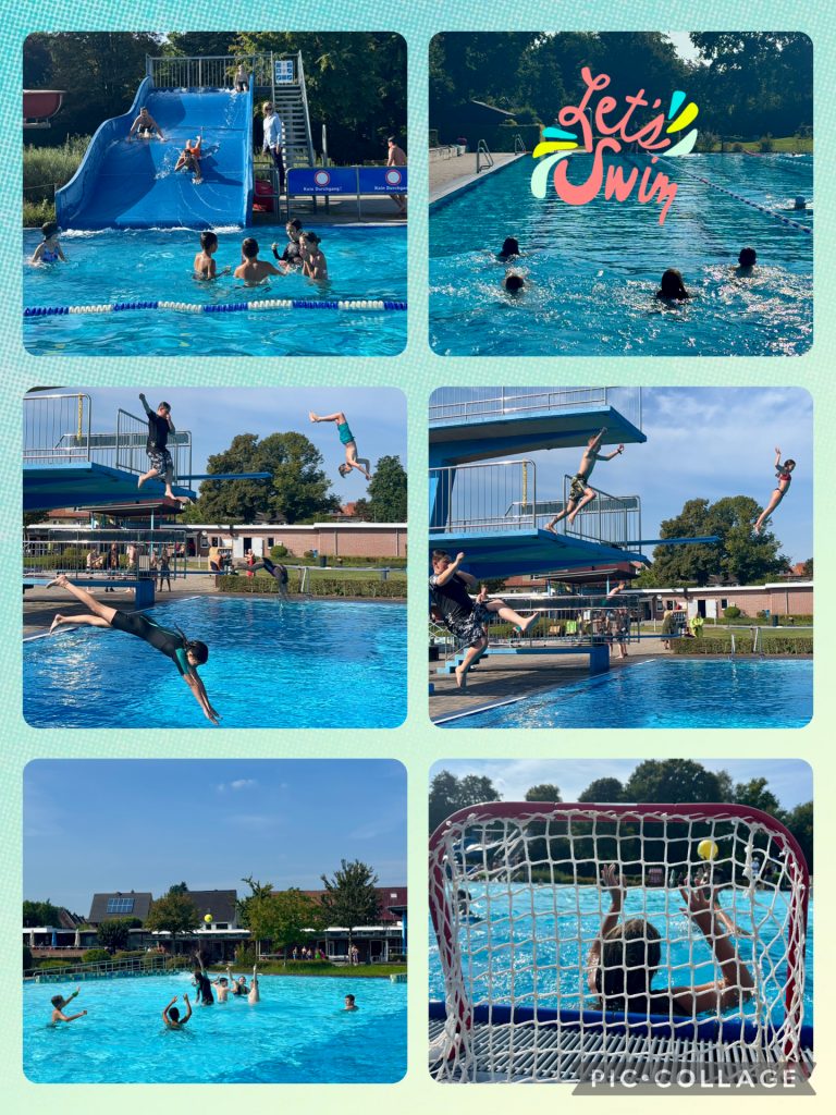 An zwei Tagen sind fast alle Schülerinnen und Schüler aus den Jahrgängen 5-9 bei bestem Wetter nach Harsefeld in das Freibad gefahren. Bei den diesjährigen Schwimmtagen (26. + 27.08.2025) konnten neue Bestleistungen auf 50m Schwimmen erzielt, verschiedene Sprünge aus unterschiedlichen Höhen präsentiert, erste Wasserballerfahrungen gemacht und lustige Wasserrutschenerlebnisse gesammelt werden. Mit dem Schwimmen auf Zeit wird den Kindern ermöglicht, dass sie das Sportabzeichen auch in diesem Jahr absolvieren können und ebenfalls wir Lehrkräfte haben dazugelernt… Wissen Sie, was ein „Katzensprung“ ist? Der wurde uns stolz in den unterschiedlichsten Ausführungen gezeigt. Während einige sich nach dem Durchlaufen der Schwimmstationen im Nichtschwimmerbecken amüsierten, nutzten ein paar Schülerinnen und Schüler die Gelegenheit und machten ihr nächstes Schwimmabzeichen.