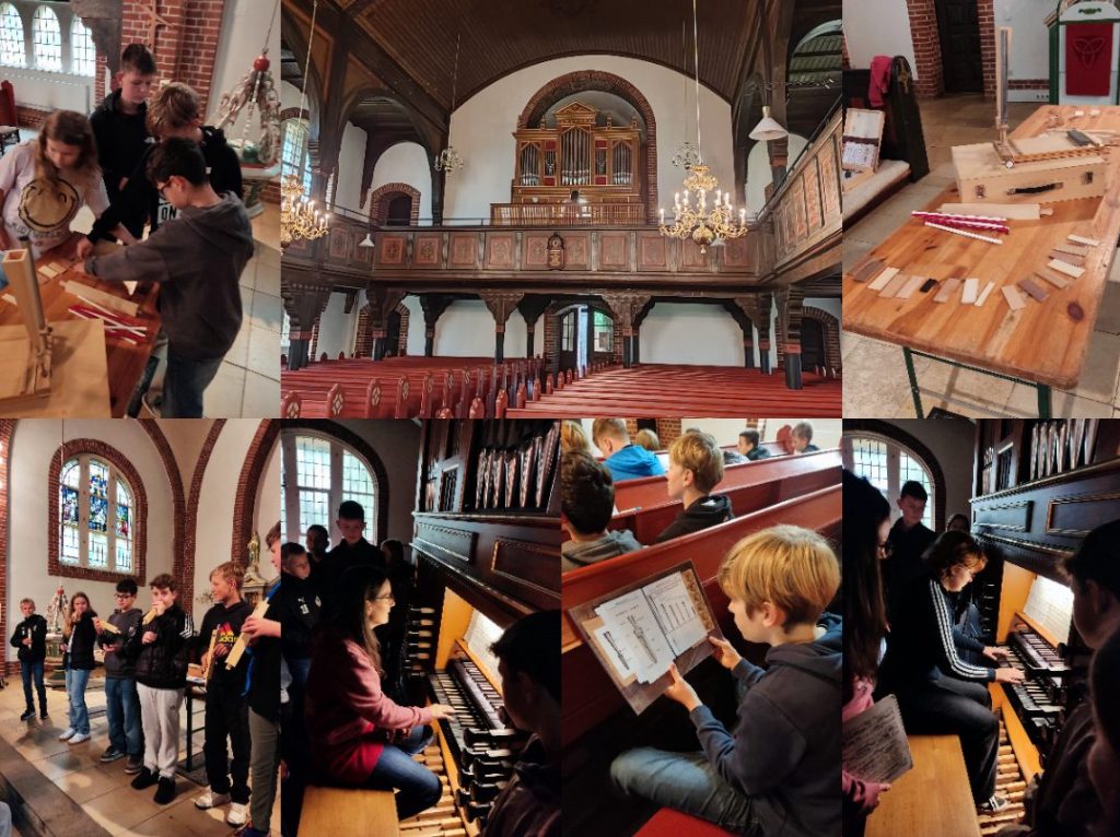 Die Organistin der Gemeinde, Katja Protzen, nahm sich viel Zeit, um den Schülerinnen und Schülern die „Königin der Instrumente“ vorzustellen. Mit Hilfe eines eigens für diesen Tag ausgeliehenen „Orgelkoffers“ der Orgelakademie Stade – einem Miniaturmodell mit Blasebalg, Mechanik und echten Pfeifen – erklärte Frau Protzen anschaulich, wie eine Orgel funktioniert.
