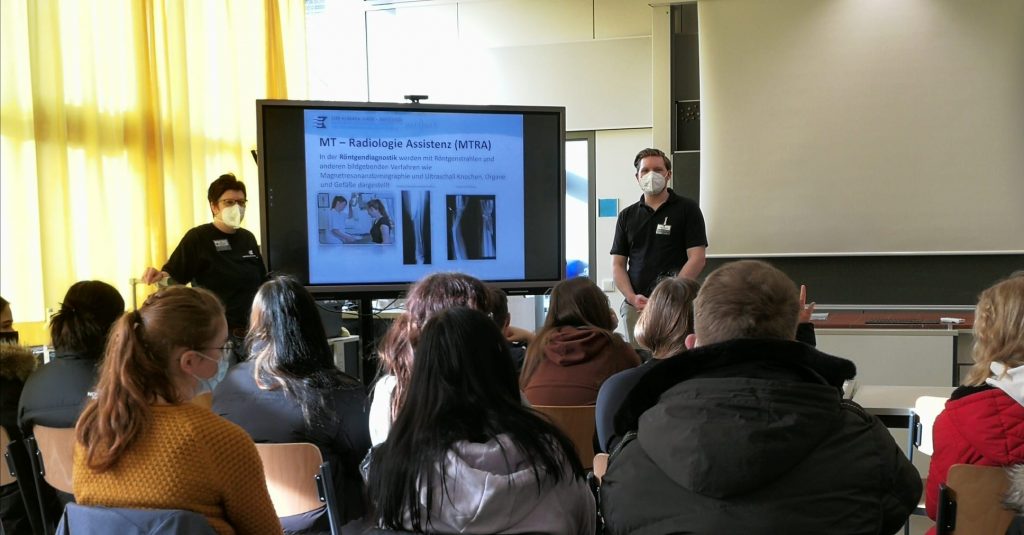 Nachdem wir 2021 unseren alle zwei Jahre wiederkehrenden Berufsinformationstag coronabedingt absagen mussten, haben wir uns ganz besonders darüber gefreut, dass wir unseren Schülerinnen und Schülern heute endlich wieder Firmen aus der näheren Umgebung der Schule vorstellen konnten. Unsere Schüler haben diese Chance größtenteils gut genutzt, um mit den unterschiedlichen Firmen ins Gespräch zu kommen und sogar den ein oder anderen Praktikumsplatz für sich zu gewinnen.