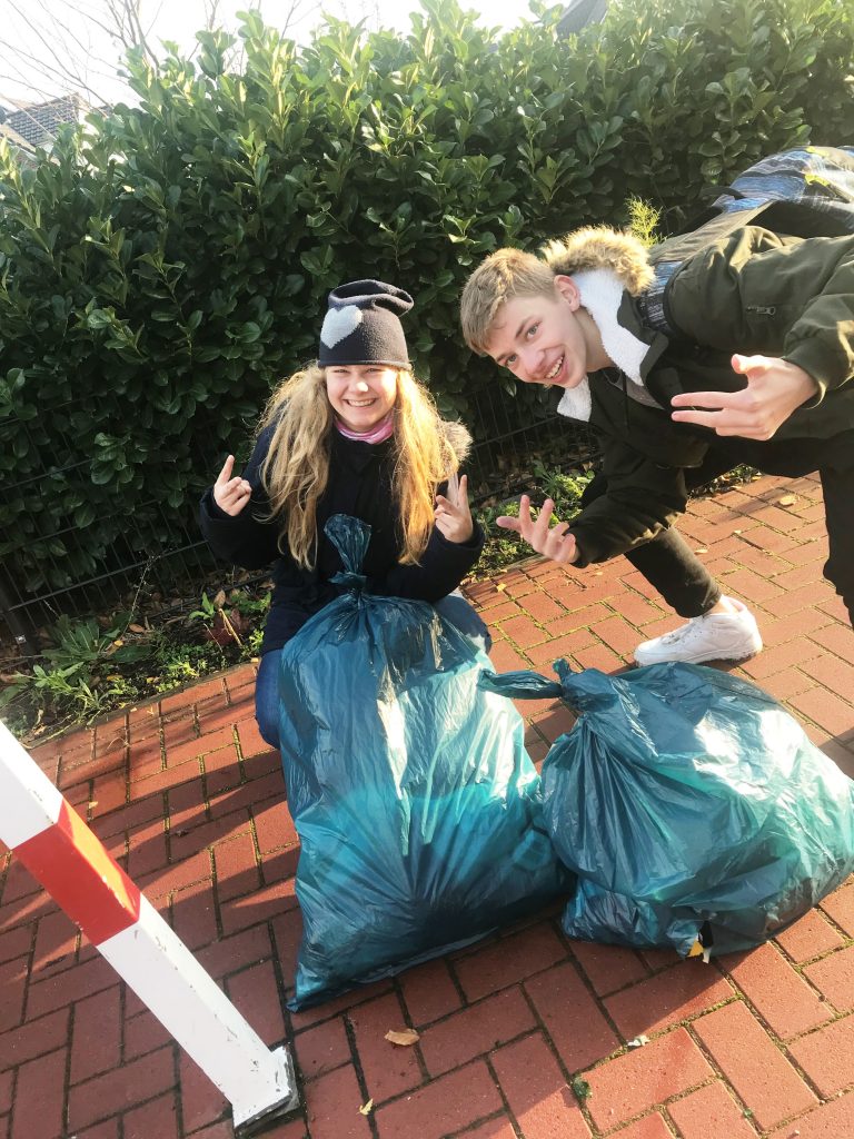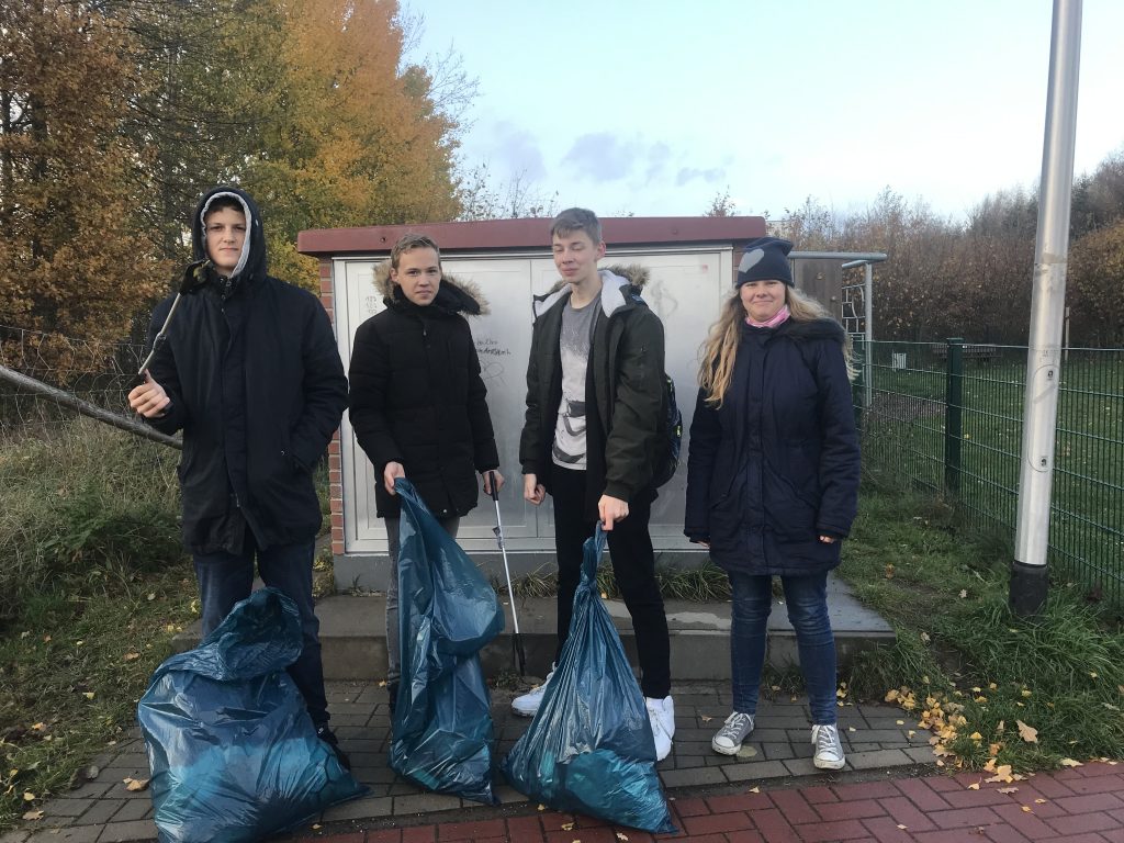Die Klasse 903 der Oberschule Apensen war in den letzten Wochen aktiv. In kleinen Gruppen wurden in Apensen auf öffentlichen Plätzen sowie in Buxtehude am Bahnhof (P+R-Anlagen) insgesamt 16 kg Müll gesammelt. Außerdem gab es einen Spendenlauf, bei dem in 30 Minuten so viele 200m-Runden wie möglich gelaufen wurden – und das bei herbstlichen Temperaturen. Insgesamt wurden 53,4 Kilometer geschafft.