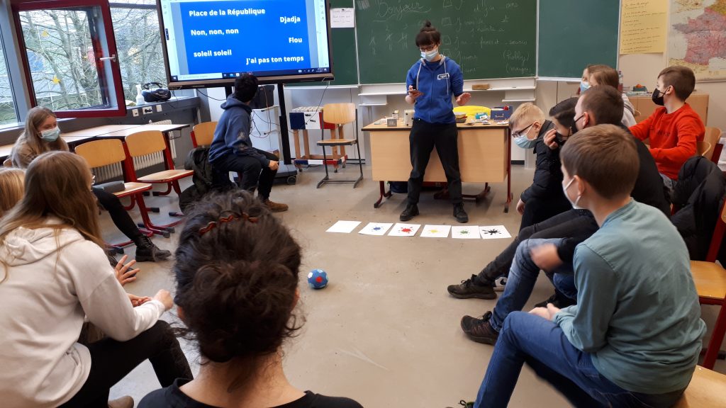 Die Animationen finden komplett auf Französisch statt: Verständigung gelingt mit einfachen, transparenten Worten und wird durch Gesten unterstützt. In Apensen ist das Konzept voll aufgegangen, die Schüler*innen wünschten sich das Programm fürs kommende Jahr gleich wieder. (Dr. Sabine Hackbarth)